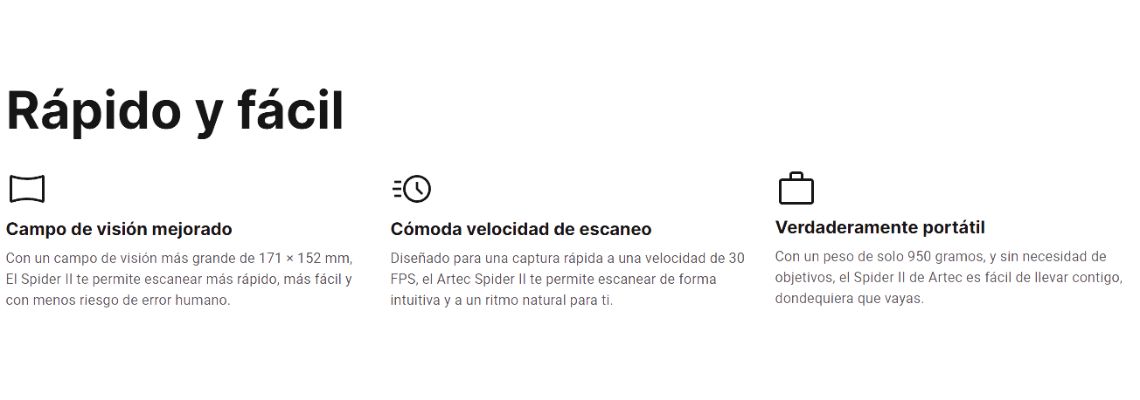 Abre nuevos caminos con el Artec Spider II, diseñado para capturar fácilmente objetos complejos, bordes afilados y líneas finas, con un impresionante nivel de detalle.