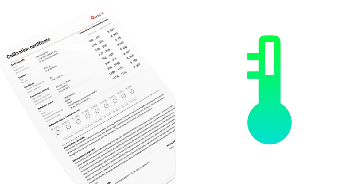 Realice su trabajo con la confianza de que ARTEC Leo le entregará siempre resultados precisos, limpios y nítidos, a la altura de los instrumentos de precisión profesional de primera línea. Cada dispositivo ha sido rigurosamente probado e incluye un certificado de calibración que garantiza su rendimiento y estabilidad térmica para obtener resultados consistentes. Además, la precisión se mantiene inalterable gracias a la placa de calibración especialmente diseñada para Leo.