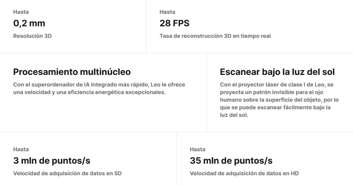 Especificaciones técnicas — ARTEC Leo
